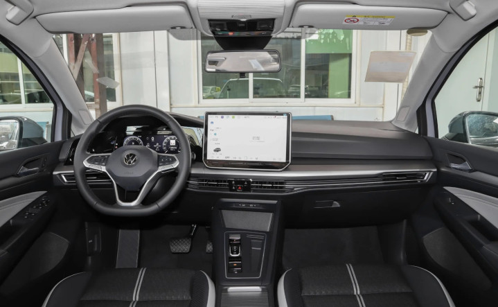 车身侧面,经典比例得以保留,平直腰线从车头延伸至车尾,搭配新增的 17 英寸双五辐轮毂与 225/45 R17 轮胎,运动气息更浓郁。车身尺寸根据版本略有差异,长宽高分别为 4282(普通版)/4289(R-Line 版)/1788/1479 毫米,轴距维持在2631 毫米,紧凑的车身尺寸让城市通勤更灵活。车尾部分,换装3D LED尾灯组,支持自定义欢迎 / 送别灯光效果,R-Line 版本还配备小尺寸扰流板与双边共两出排气装饰,强化运动属性。